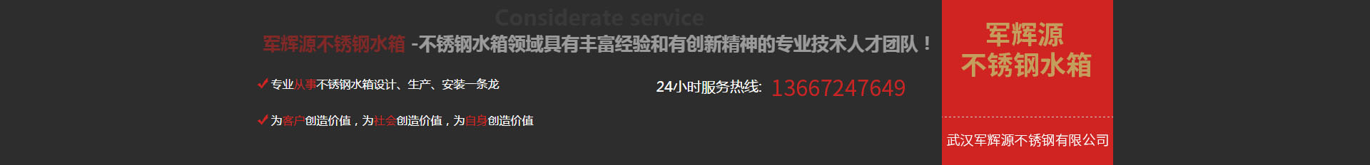 武漢軍輝源不銹鋼有限公司是華中地區(qū)專業(yè)生產(chǎn)不銹鋼水箱的環(huán)保企業(yè),公司集不銹鋼水箱開發(fā)設(shè)計、生產(chǎn)、銷售、維修、售后服務(wù)為一體。